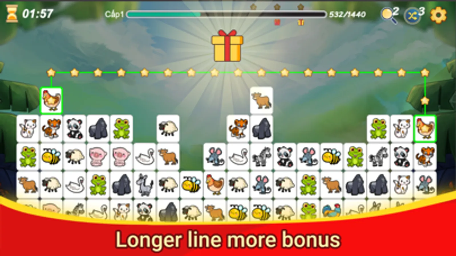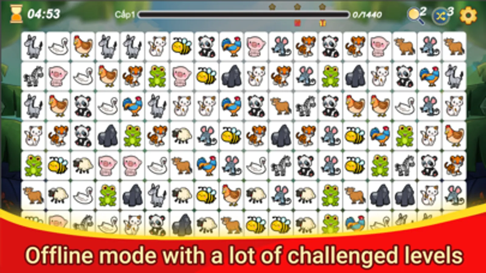 - Matching same tiles and make sure no more three lines between them - - Remove all items on board.