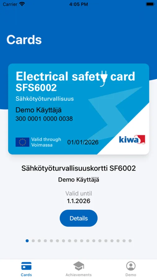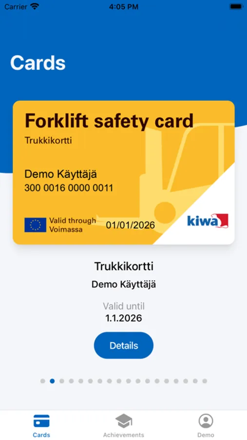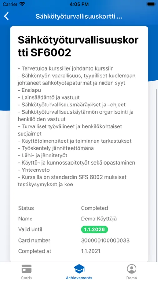 View your competences and mobile cards from MyCertificate. Mobile cards are always with you and you can use them show your competence to employer or to a contracting company. You can also view your eLearning, webinars, classroom trainings and virtual reality-trainings.