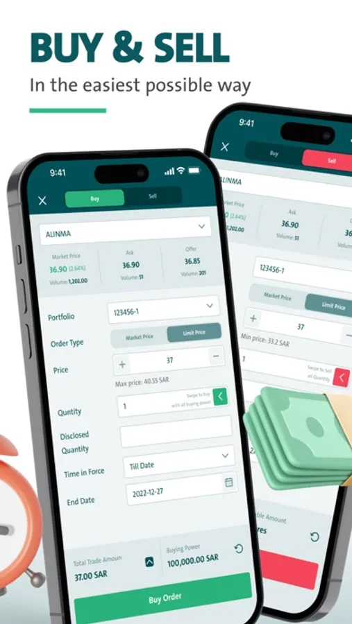 As an extension of our distinguished services, we are pleased to present you the new application “Alinma Tadawul”. It allows you to trade and manage your portfolios and investment funds at any time and place with all safety, speed and ease. Alinma Tadawul is an easy and secure way for market transactions and services, available for all customers of E-Channels services of Alinma Investment Brokerage Division. You can access your portfolios with the same internet username and password.