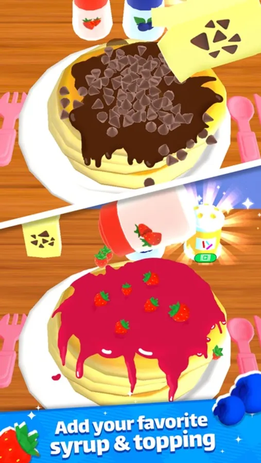 Flulfill order of hungry customers by flipping, adding a bit of colorful sweetness topping to the pancake, and serving pancakes. Unlock new kitchens, toppings, sauces, and more to keep them coming back for more! This game is like no other: super simple to play but challenging enough to keep you playing for hours!