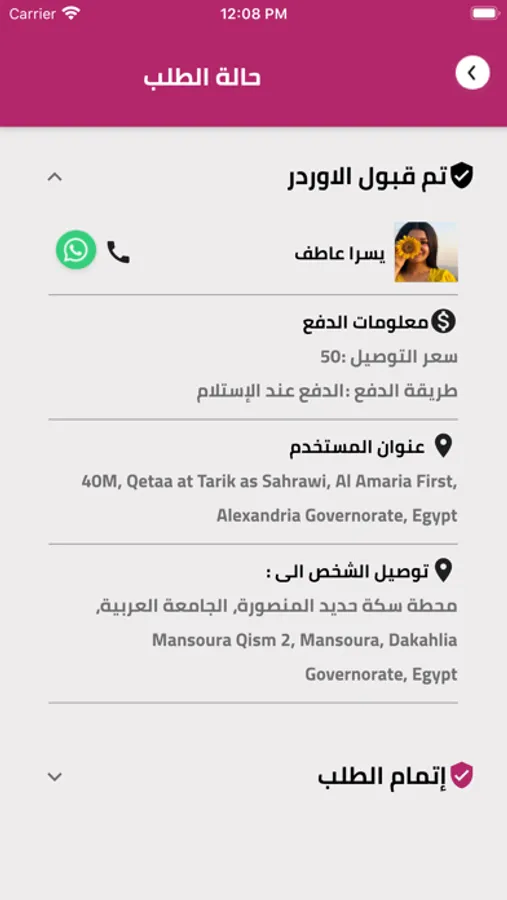 - Confirm.. order pick up time or the delivery time (if the store supports this option)