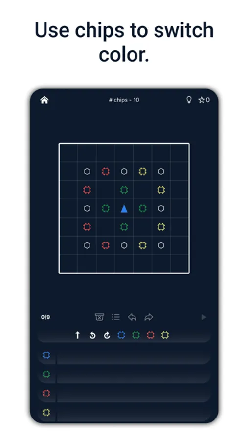 - Change color: Load a chip of a specified color and execute the instructions it contains.