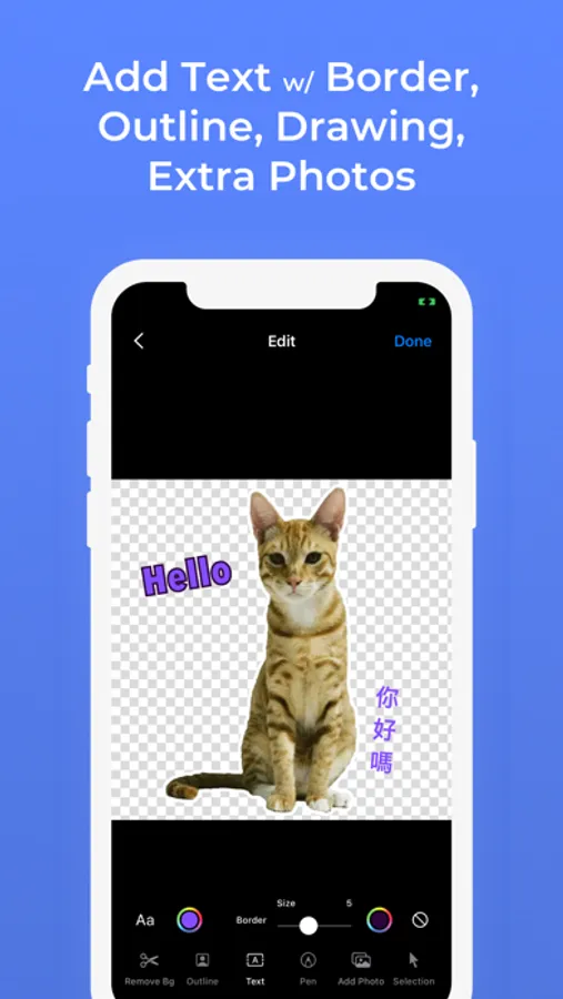 • Simple-to-use sticker editor with cropping, background removal and outlines.