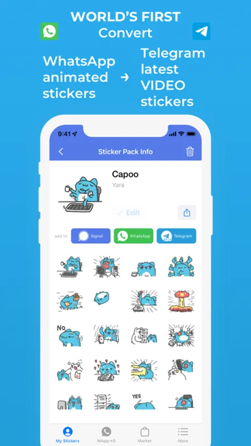 • Convert WhatsApp / Signal stickers to all other messaging platforms – with animation support
