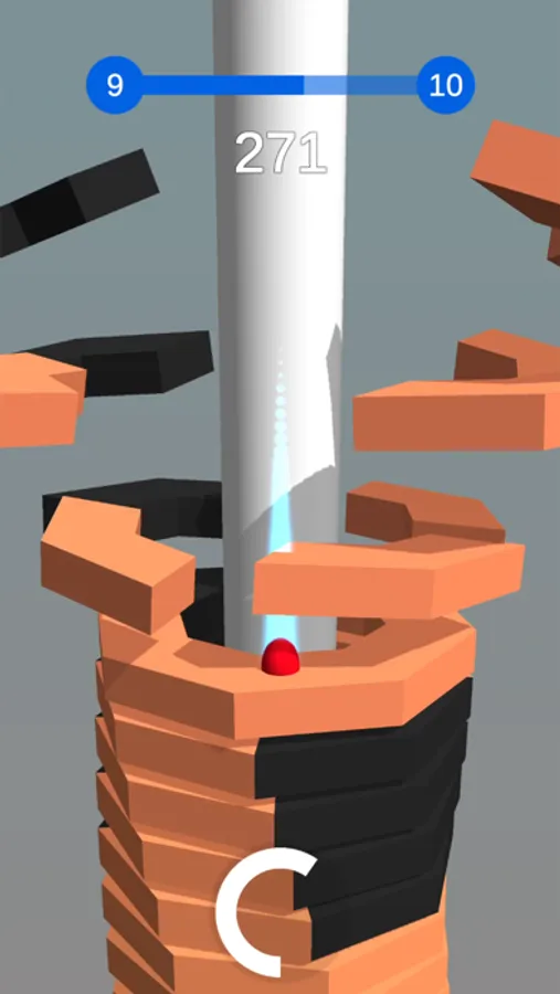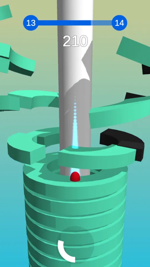 Press and hold on the screen to lower the ball and break all the colored bricks while being careful of the black ones.