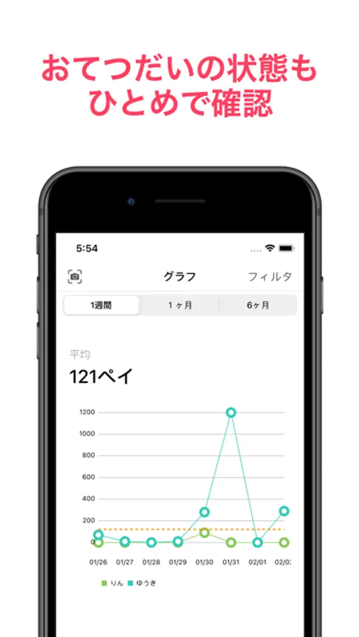 週間、1ヶ月、6ヶ月とお手伝いの状態を簡単に確認できます