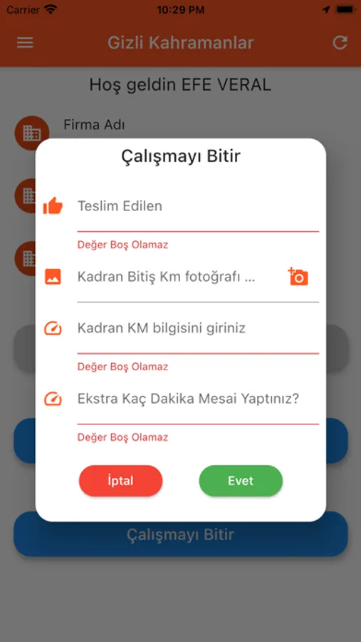 Ulak firmasının bünyesinde çalışan kuryelerin işleri hakkında bilgi alması ve gerekli günlük raporları sisteme kaydetmesi için hazırlanan yardımcı uygulama