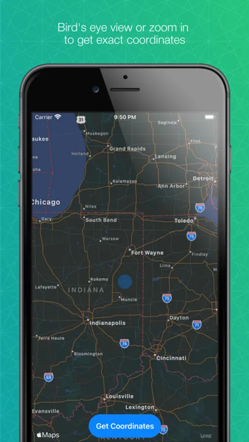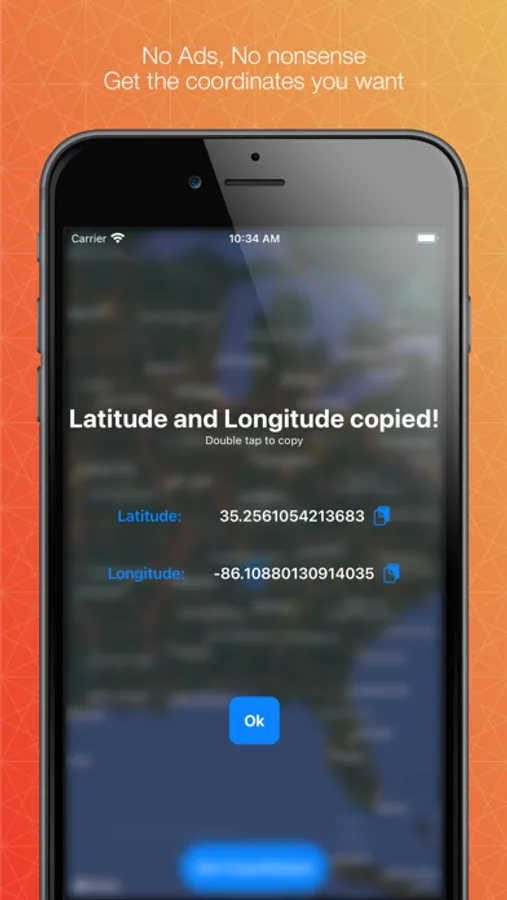 Copy the coordinates with the touch of a button to pass the coordinates to anywhere you like.