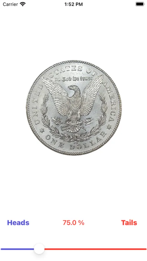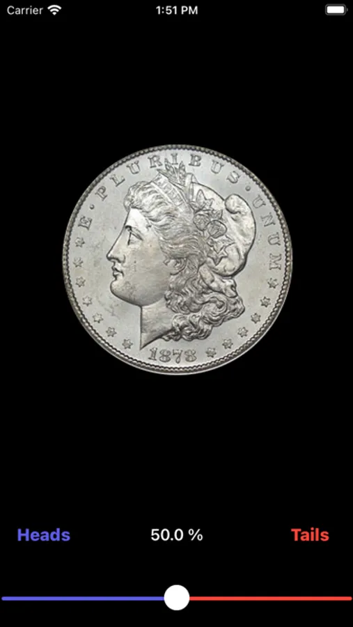 This is no ordinary coin flip app. With a long press anywhere on the screen, a slider will appear to let you change the coin's probability. Then with another long press the slider will disappear. If they are suspicious you can discreetly set the probability back to 50/50 by double tapping anywhere on the screen.