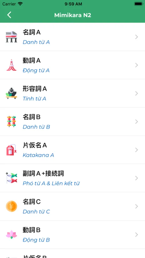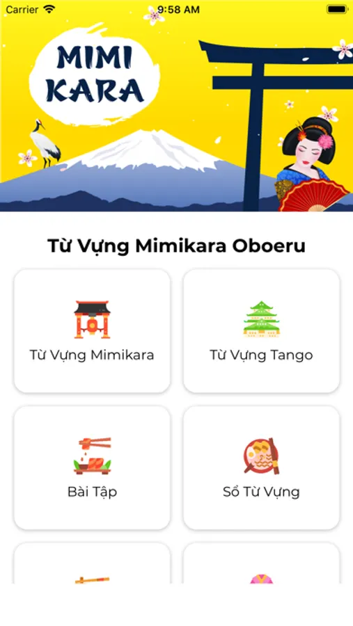 MIMIKARA OBOERU là một ứng dụng miễn phí giúp bạn học tập từ vựng tiếng nhật một cách tốt nhất, tiết kiệm thời gian học tập của bạn.