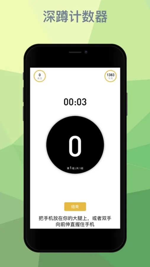 You can press the phone on your lap, or hold it with both hands, horizontally, hold the phone, and do squats to count.