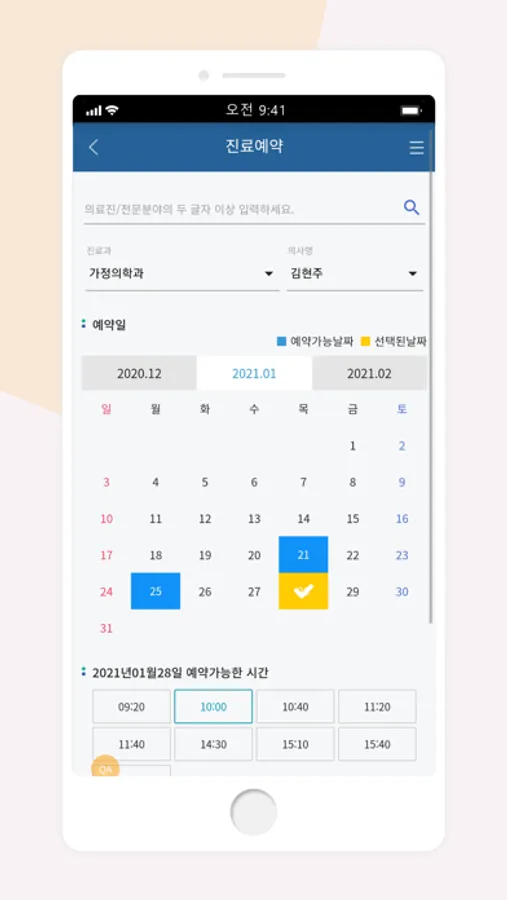 모바일앱에서 진료예약을 간편하게 할 수 있습니다.