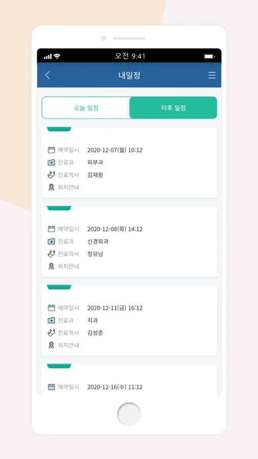 병원에서의 진료일정을 한번에 보실 수 있습니다.