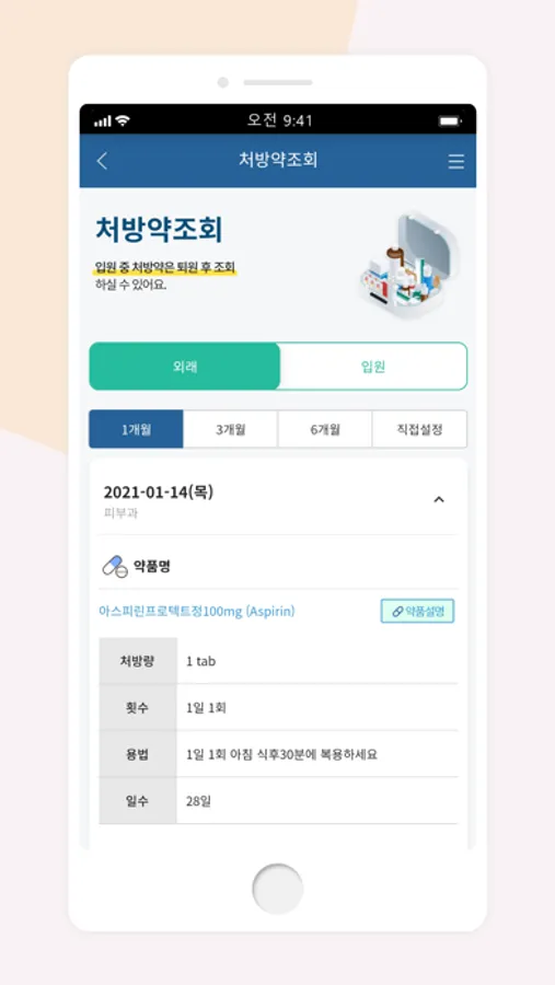 병원에서 처방 받은 약을 한눈에 확인할 수 있습니다