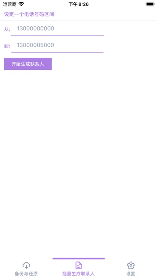 轻轻松松创建一个通讯录的备份,然后随心所欲的创建无数个号段区间的临时通讯录联系人。