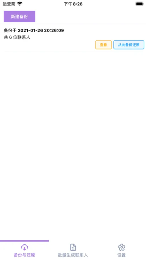 通过最初的通讯录备份点还原通讯录成最初的样子,或者通过任何其他的备份点,将通讯录任意还原成备份时点的状态。