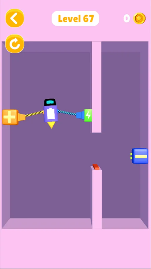 The tiny battery is here! Help the battery to recharge itself. All you need to do is to connect the plugs of its hands to the referred power board. Pass the levels by recharging the battery.