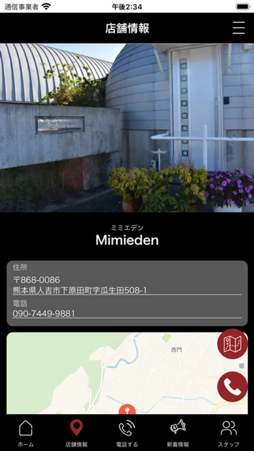 店舗のマップが表示され、地図アプリとも連携しているので、初めてのご来店の時も簡単に見つけることができます。
