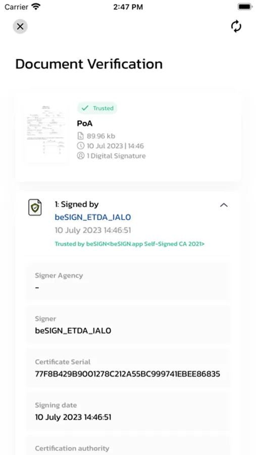beSIGN is an digital signature platform that makes the personal and business life more comfortable by utilitizing the top-grade security and ease of use of the mobile platform in document signing. beSIGN provides a minimal user interface with the intention of making it easy to use for every individual and more secure.