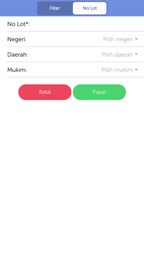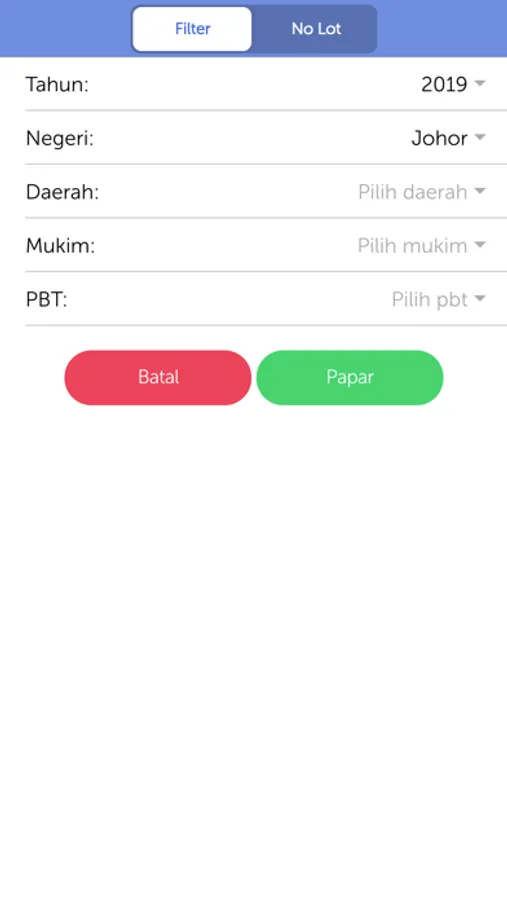 3. Carian maklumat melalui carian Negeri, Daerah, Mukim atau kawasan Pihak Berkuasa Tempatan.