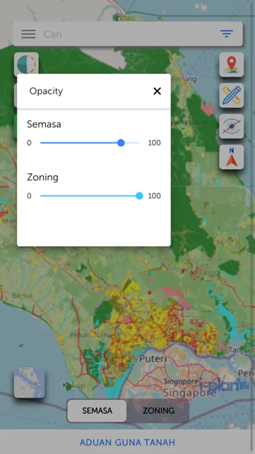 1. Paparan peta guna tanah Semasa dan Zoning.