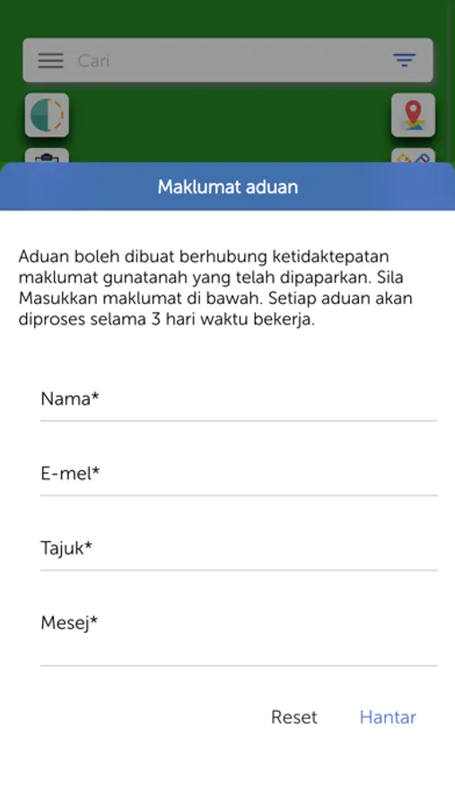 4. Fungsi Geo-lokasi bagi paparan maklumat guna tanah di lokasi.