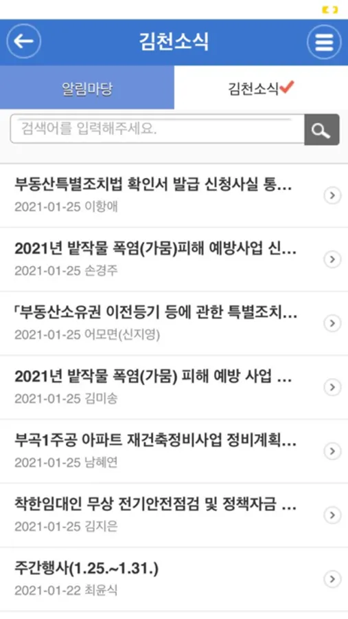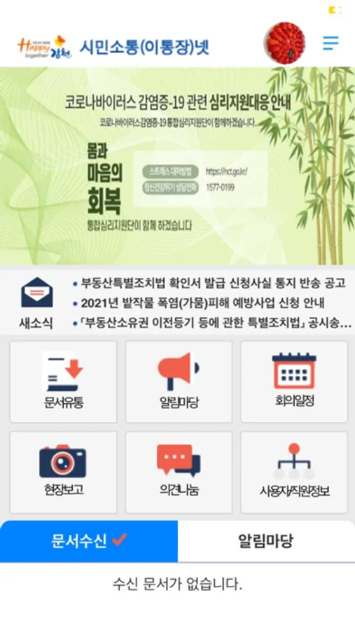 김천시청과 시민,사회단체들 간에 문서,알림,회의,담당자 등의 행정정보를 PC또는 모바일에서 확인할 수 있는 모바일용 김천시 시민소통넷 입니다.