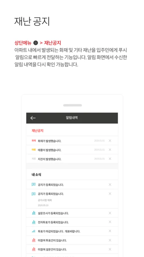 아파트키퍼의 실시간 긴급&재난공지 시스템으로 신속하고 안전하게 전달받을 수 있습니다.