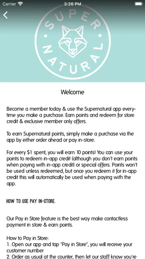 The Supernatural app will make the most of your in-store experience, allowing you to pay through your mobile via