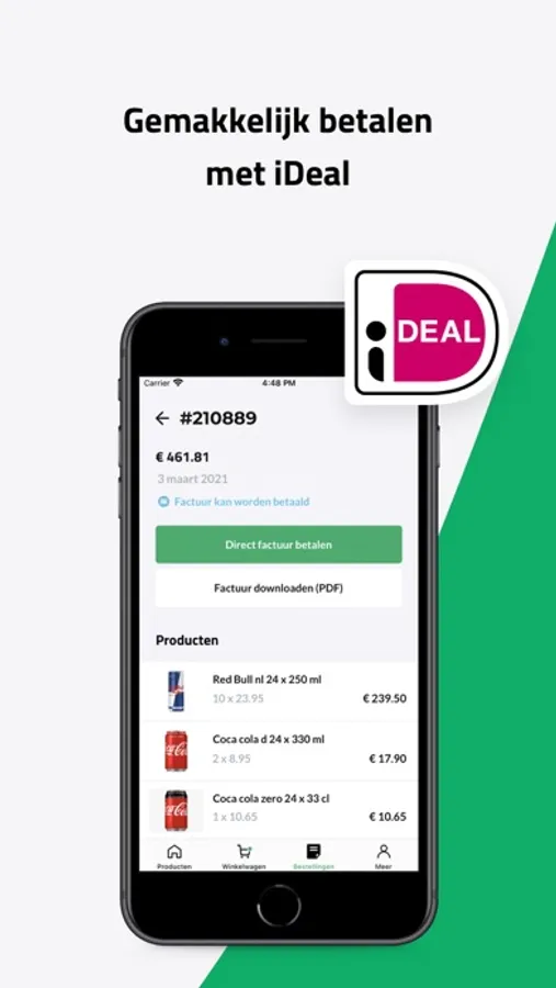 - Uw facturen terugzien en indien nodig, betalen met iDeal.