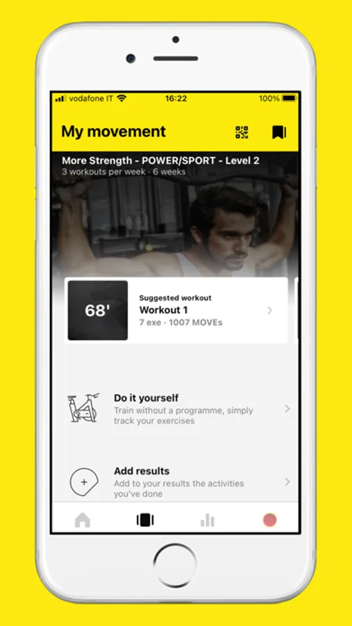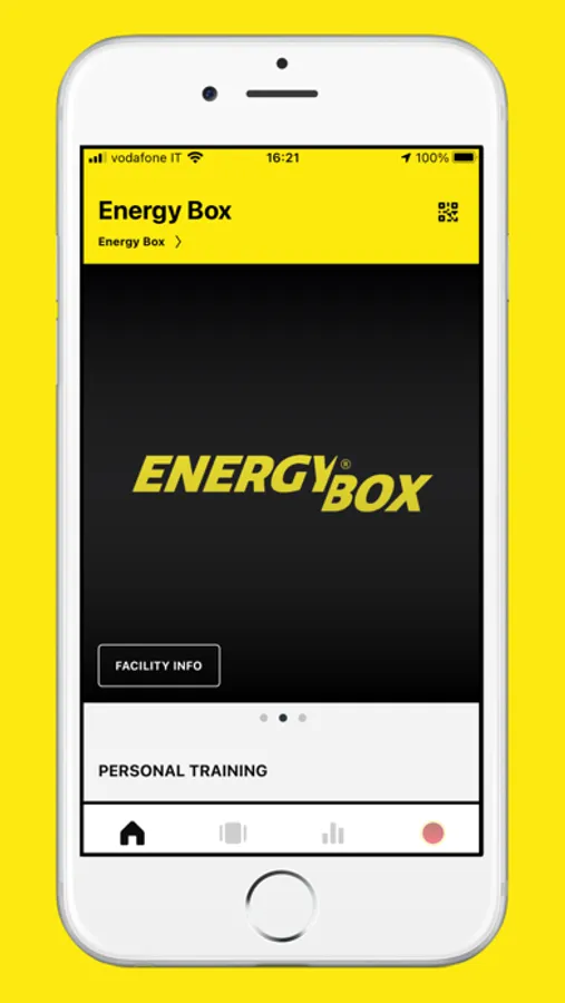 Geniet van de beste ervaring in clubs met Technogym apparatuur door de Energy Box te gebruiken om in te loggen op apparatuur via Bluetooth of QR code. De apparatuur zal automatisch inloggen met uw programma en uw resultaten zullen automatisch worden opgeslagen in uw Mywellness account