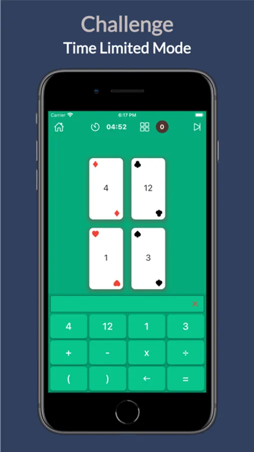 The objective of this game is to make 24 by using operators (+ - x ÷ ) on given four numbers ranging from 1 to 13, each number can only be used once. The game offers different playing modes such as self practice, time-limited challenge and multiplayer , which allows maximum four players to play together.