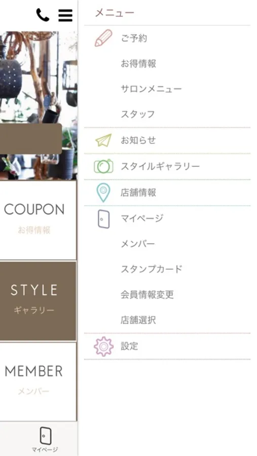 ▼マイページ機能で来店履歴や予約履歴がポイント保有数が確認できます。