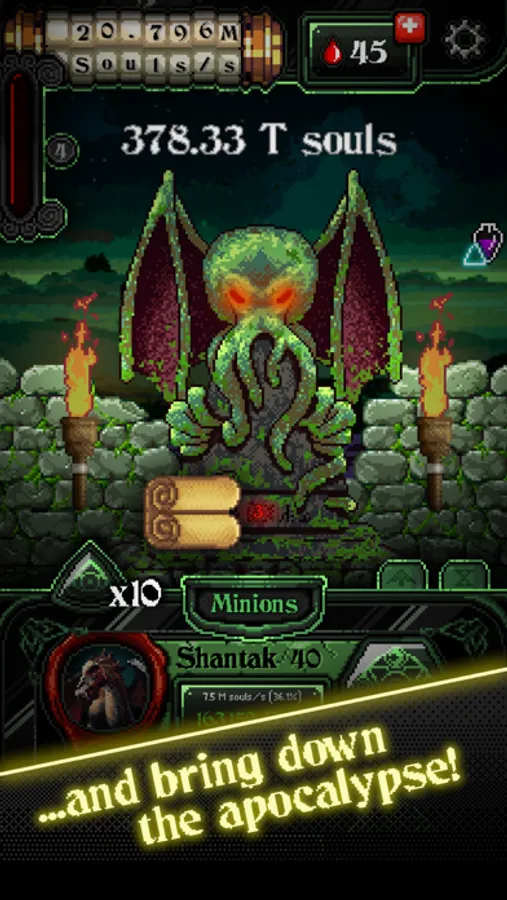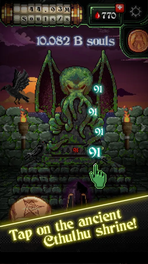 Come to the ancient temple of Cthulhu at the dark shore under the ever-setting sun... Unleash the minions from the Lovecraft universe and become increasingly powerful with the souls they collect in your name. You will master your own madness, meet the Outer Gods and become more godlike with each passing timeline.