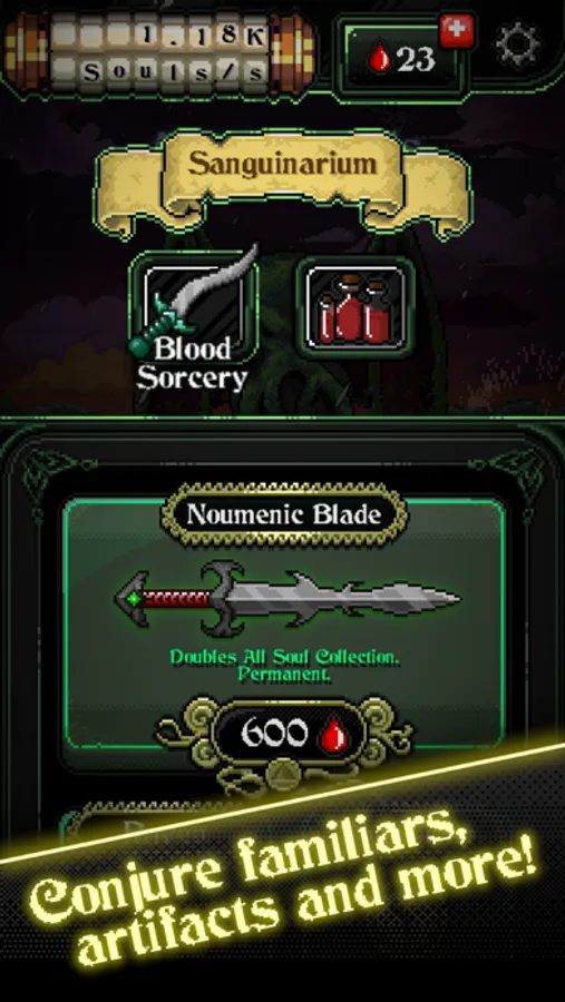 As you progress within the game you will unlock different Offerings that will reward you with Elder Blood. With Elder Blood you can acquire artefacts and engage in Blood Sorcery which will help you in unique ways. Upon collecting a certain number of souls, you will be asked to draw magical sigils that empower you.