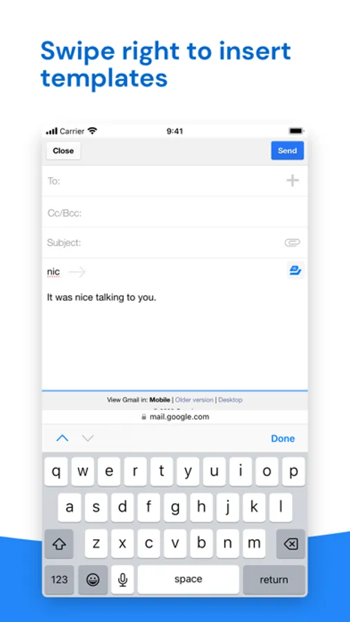 Most of your emails start with “Hello firstname”? Press ‘h’ and swipe right to write “Hello Jennifer” (if you’re writing to Jennifer, of course ; ) )