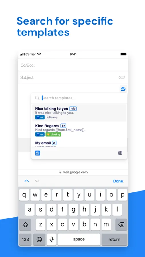 Create templates out of repetitive pieces of text. Insert them in your emails within seconds with shortcuts, and respond faster to your customers!