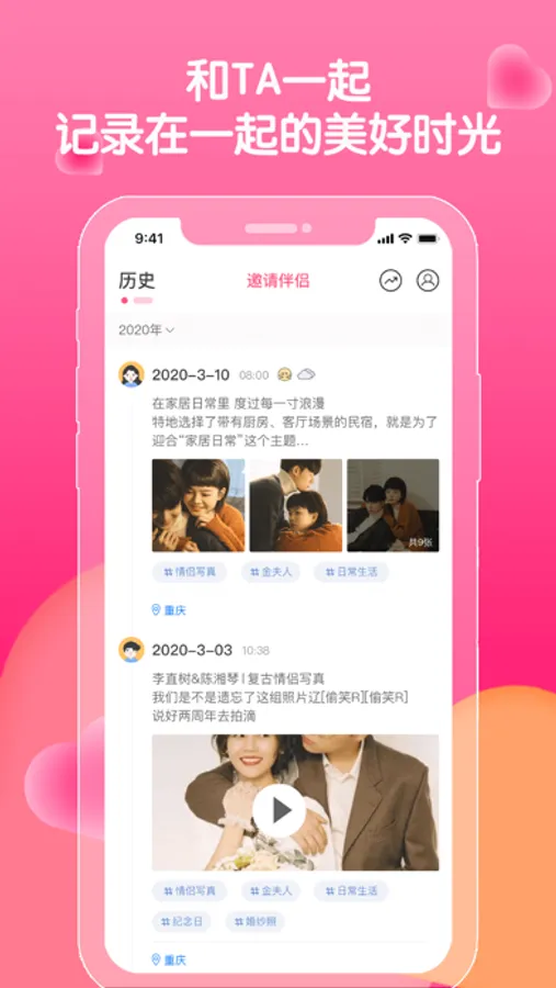 它可以邀请另一个人和你一起记录生活。选择你的心情,添加你这一天经历过的日常,还可以添加定位和标签。记录下来的心情统计到数据和日历中,这种形式有利于你更好地了解自己及对方的情绪变化,让生活方式变得更加积极!