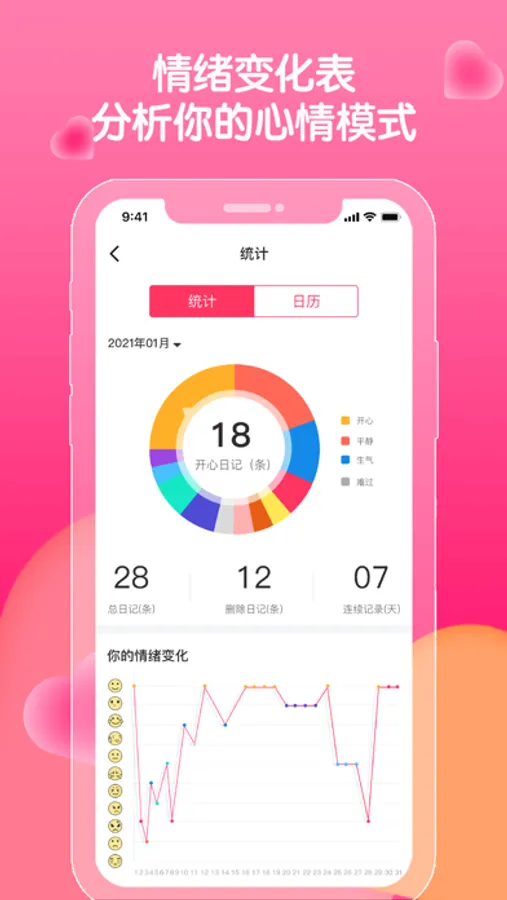 这是一款记录心情和故事的日记App,并有统计情绪的功能。