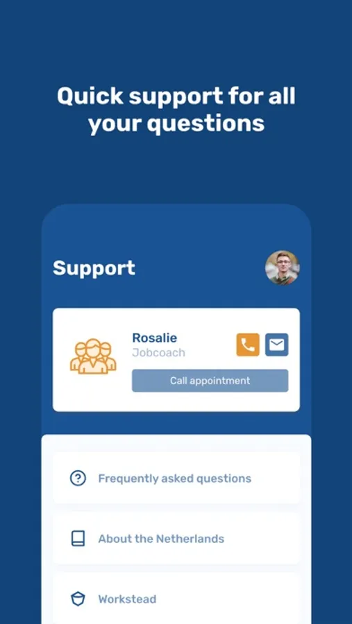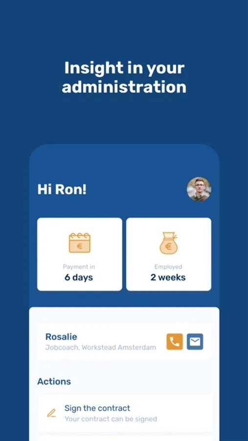Is there anything you need to sign? Or do you need to take action? The app tells you exactly what to do! Via your Dashboard you can also contact your jobcoach and you can see an overview of your salary and employment.