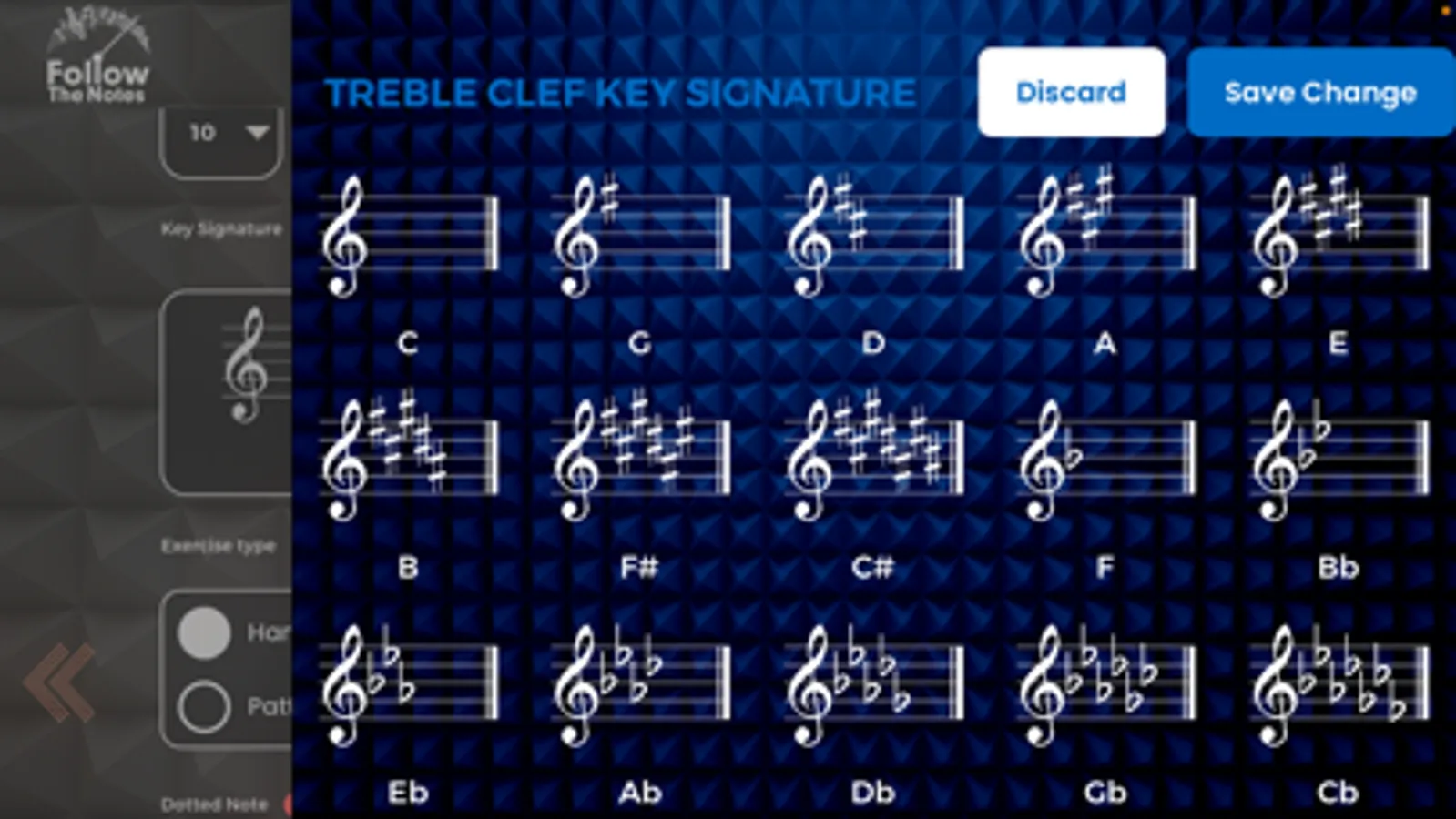 ◦ Time Signature: which music time do you need to train? 4/4? 3/8? 12/32? You can choose any time signature you want, from 1/2 till 30/32