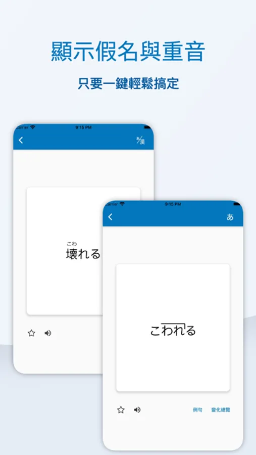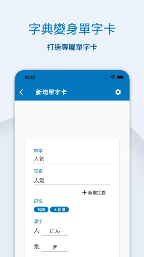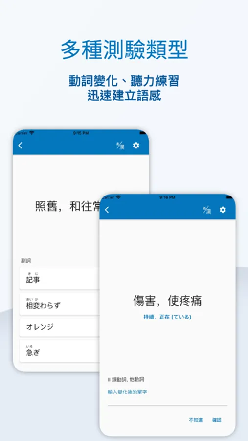 「背日文神器」是你學習日文單字的必備工具,使用單字卡的概念,配合多種類型的題目,幫助你迅速記住單字,輕鬆通過日文檢定!