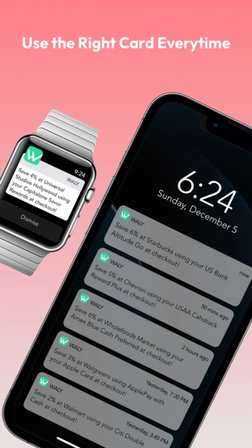 Open Waly, let it work in the background, and get automated money advice notifications. Whether you shop at stores or online, buy groceries, dine at restaurants, fill up gas, book travel, buy tickets, pay bills, or spend on everyday purchases. You can earn $750/yr or more Without spending extra!