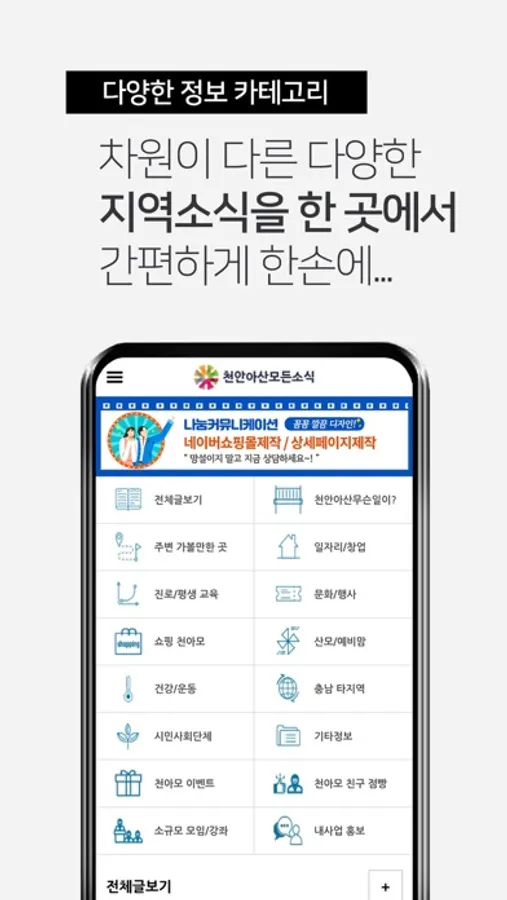 천안아산지역내 좋은 정보, 소식이 궁금하다면 천안아산모든소식 앱을 이용해주세요.