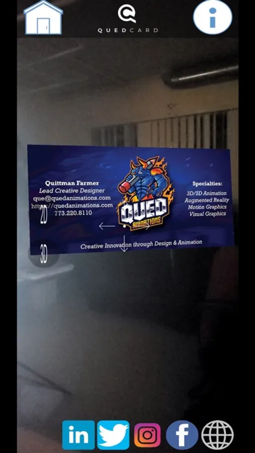 QUED Card is an Augmented Reality Business Card application created to eliminate the need for printing business cards! Here is the issue; printed business cards in the US alone are thrown away by 88%. This is over 8.8 billion of the 10 billion printed.