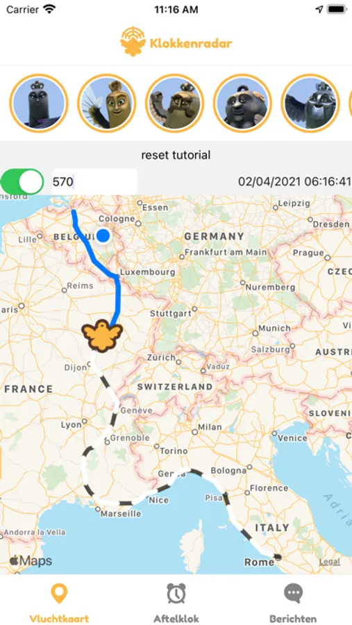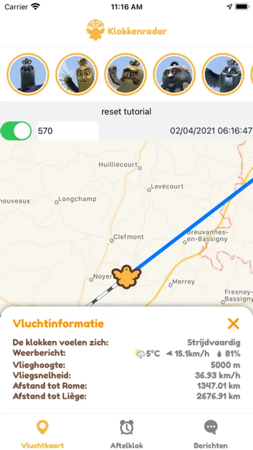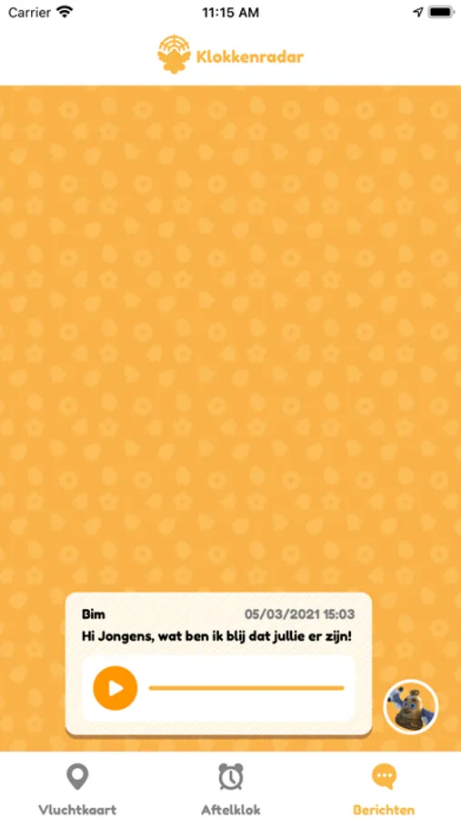 Samen met klokje Bim volg je live het avontuur van vijf klokken: Bim’s ouders Patina en Tuur, Apollo – de klok uit de brandweerkazerne die alarm luidt als het ergens brandt -, aanvoerder Remi én Aurore. Zij leggen de lange weg richting Italië om er voor zaterdagavond kristallen eieren op te halen in het heiligdom, om zo de lente te vieren. Bim zelf is nog te jong om mee te vliegen, maar vanuit zijn eigen toren brengt hij verslag uit van de tocht die de anderen, door weer en wind, afleggen.