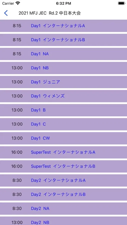 アプリを開くとその日に対応しているライブリザルトをチェック可能。