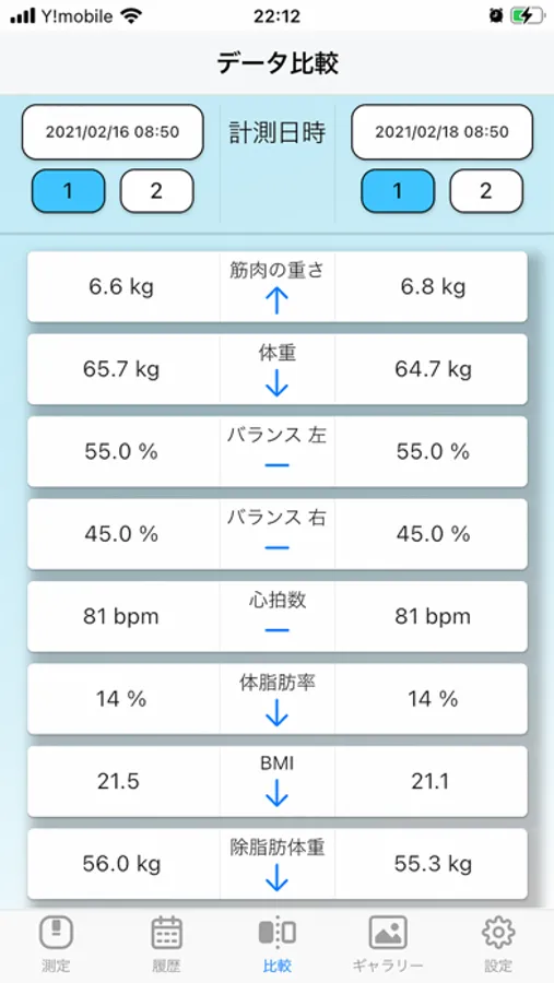 ・指定した2つの日付の計測結果を並べて比較表示。
