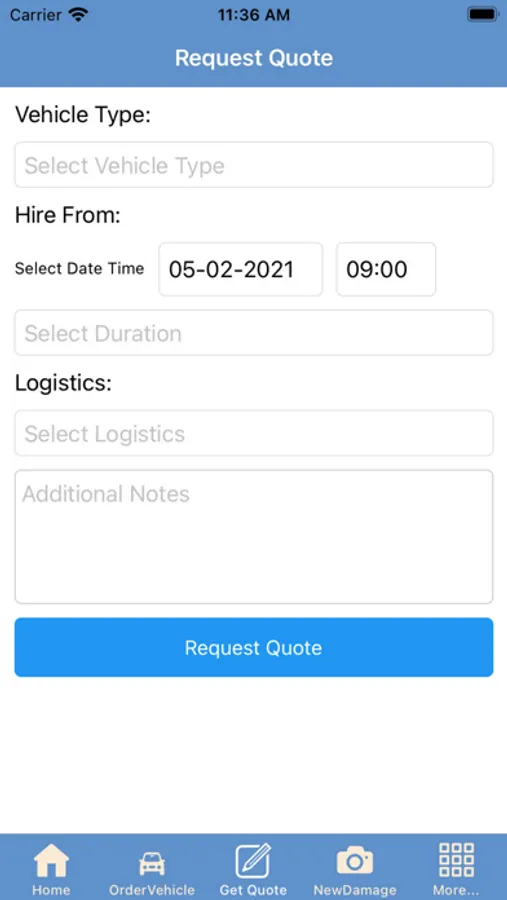 Vehicle hire for Portsmouth City Council. Book new vehicle, obtain a quote, extend booking and send damage report.