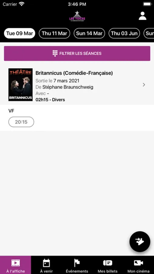 -Les horaires des séances